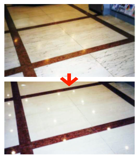 石材を張替えると費用も工期もかかり、環境にも優しくありません。穴埋め補修ならびに光沢復元研磨作業により大理石が蘇ります。