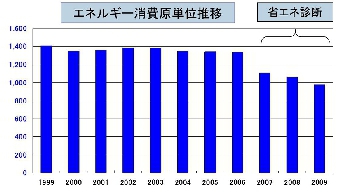福岡市の市有施設において省エネ診断を2007年より3年間行い、エネルギー消費原単位を30%以上削減できました。